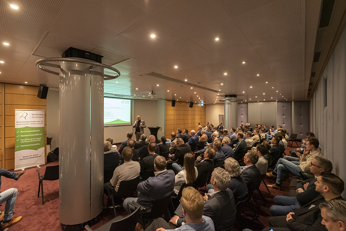 Vervolgens neemt John Smeets het woord. John is lid van het technical committee van de European Rental Association (ERA) en geeft in het kort weer wat ERA is en wat zij wil bereiken voor de Europese verhuurbranche. De ERA heeft als doel om het verhuurconcept te promoten, de verhuurmarkt te vergroten en harmonisatie te realiseren van wet- en regelgeving. Voorts geeft John aan dat de transitie van de verhuurmarkt ook wordt veroorzaakt door de verandering van de klantvraag en de verdienmodellen. Verhuurbedrijven leveren steeds meer kosten- en tijdbesparende oplossingen aan hun klanten. Hiervoor is een vroege acceptatie en integratie van digitale oplossingen essentieel. Ook John gaf aan de deelnemers mee: Kom op tijd in actie!