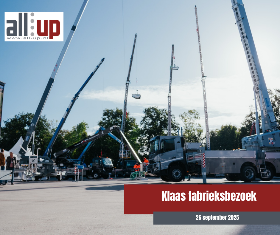 Op vrijdag 26 september is het weer zover: het jaarlijkse Klaas Fabrieksbezoek, georganiseerd door All‑Up, opent weer haar deuren voor geïnteresseerden uit de verhuurbranche. Dit bekende en geliefde event biedt een ideale mix van informeel contact, diepgaande informatie en technologische vernieuwing, en vormt inmiddels een vaste waarde op onze industriële kalender.